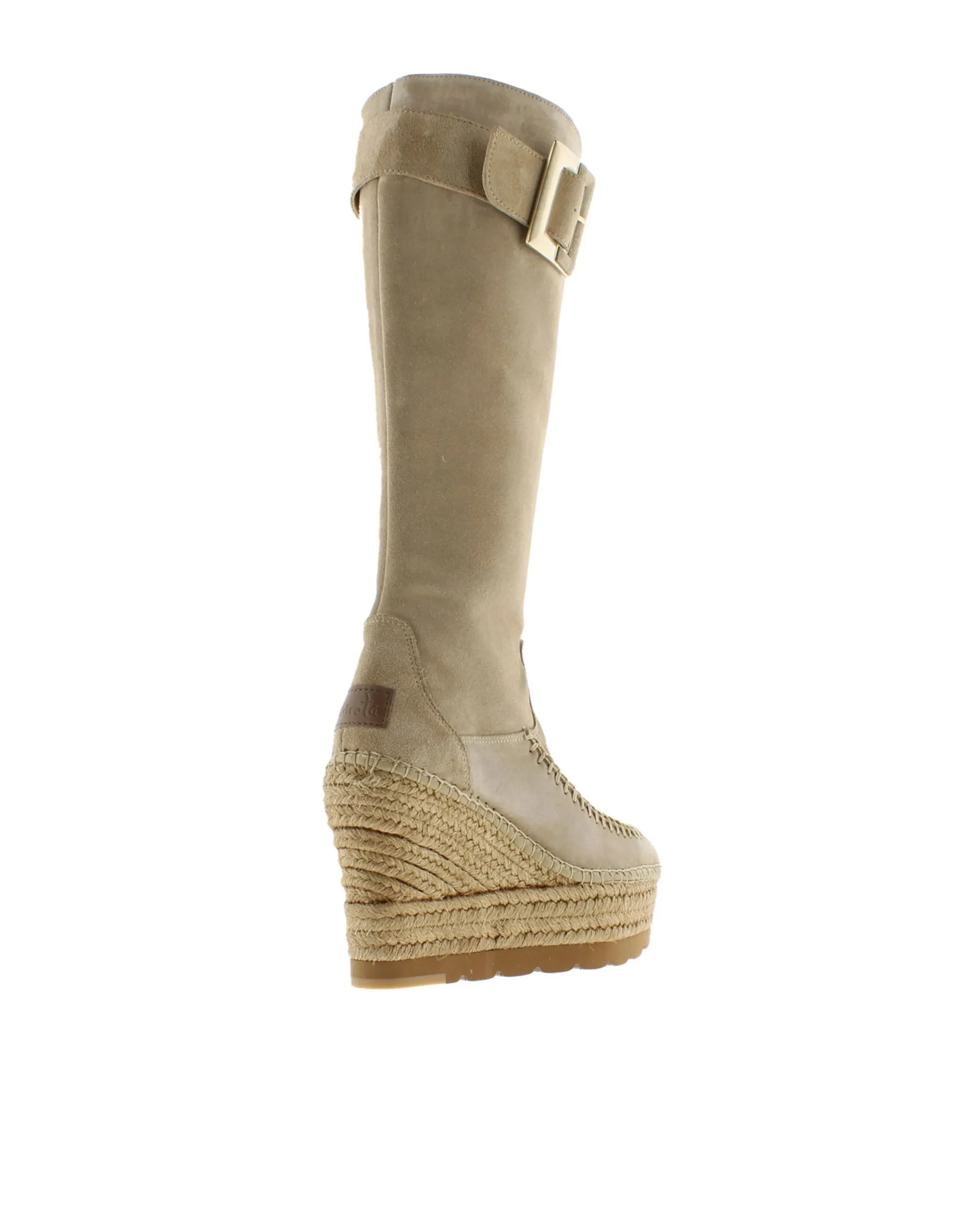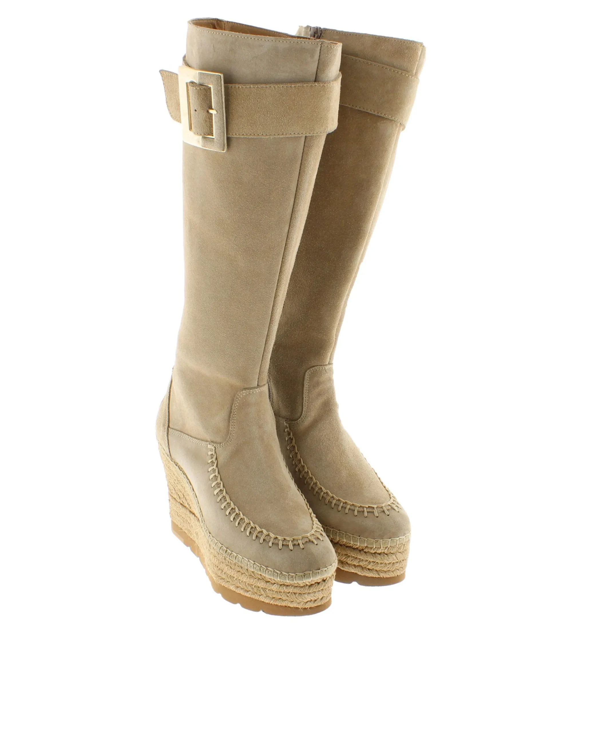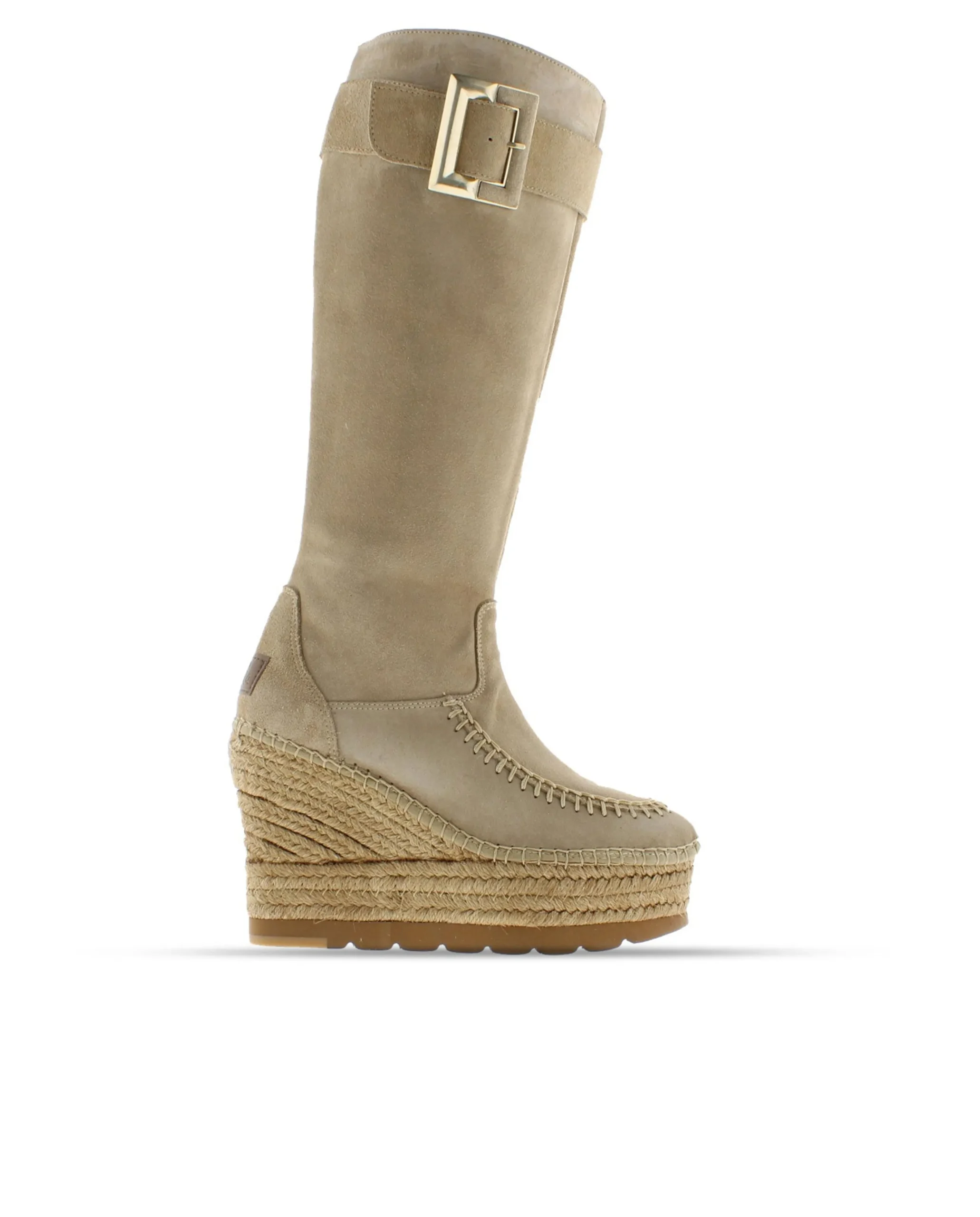 Bota de yute natural de 10,5 cm en serraje color arena. Plantilla de microfibra transpirable y antibacteriana.