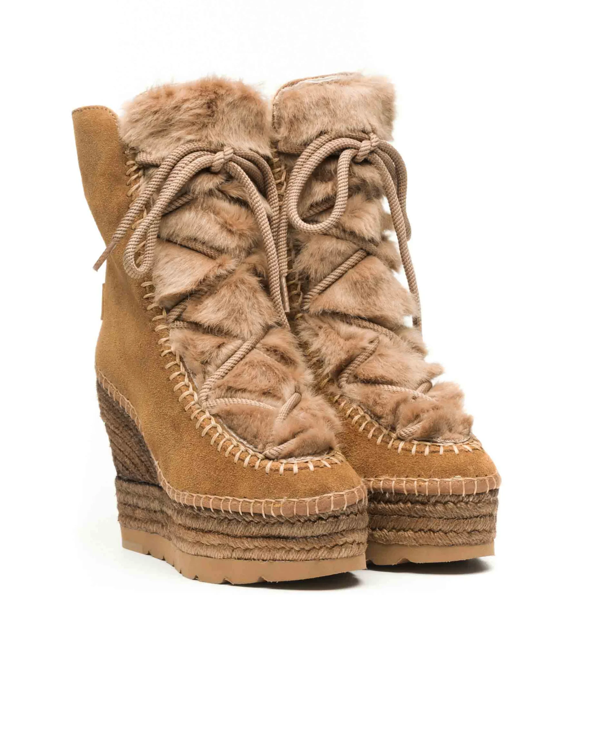 Botín de cuña de yute natural de 10,5 cm en serraje color cuero. Plantilla de microfibra transpirable y antibacteriana.