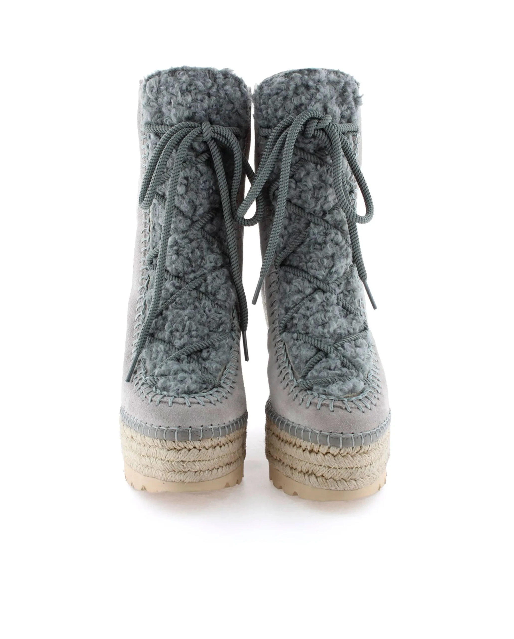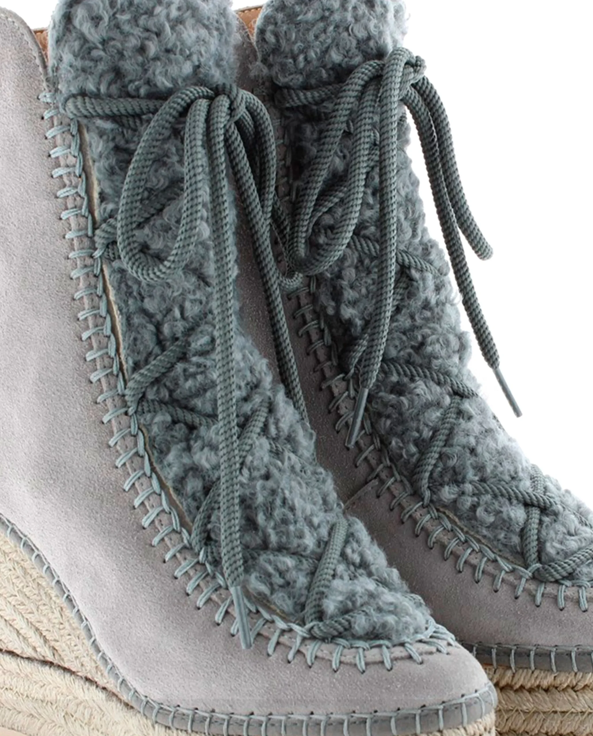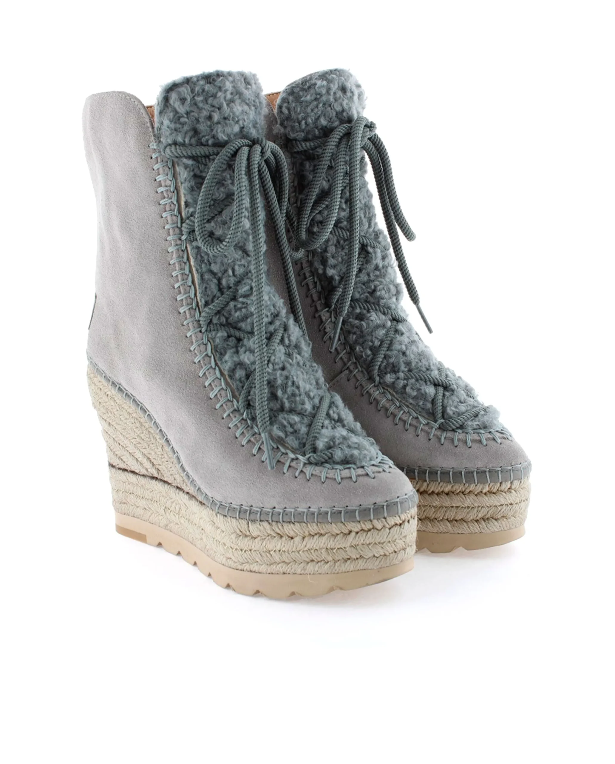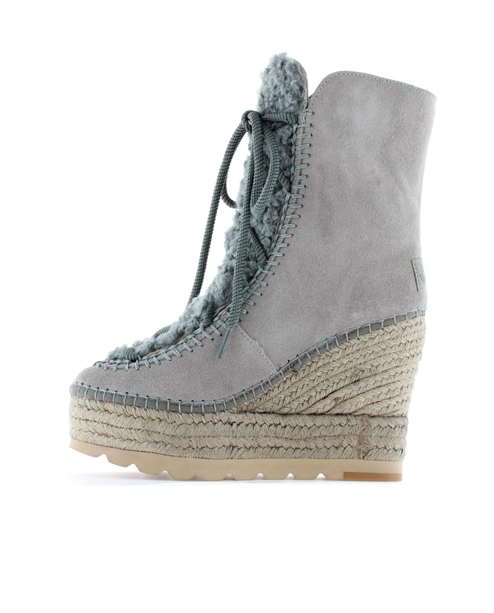 Botín de cuña de yute natural de 10,5 cm en serraje color gris. Plantilla de microfibra transpirable y antibacteriana.