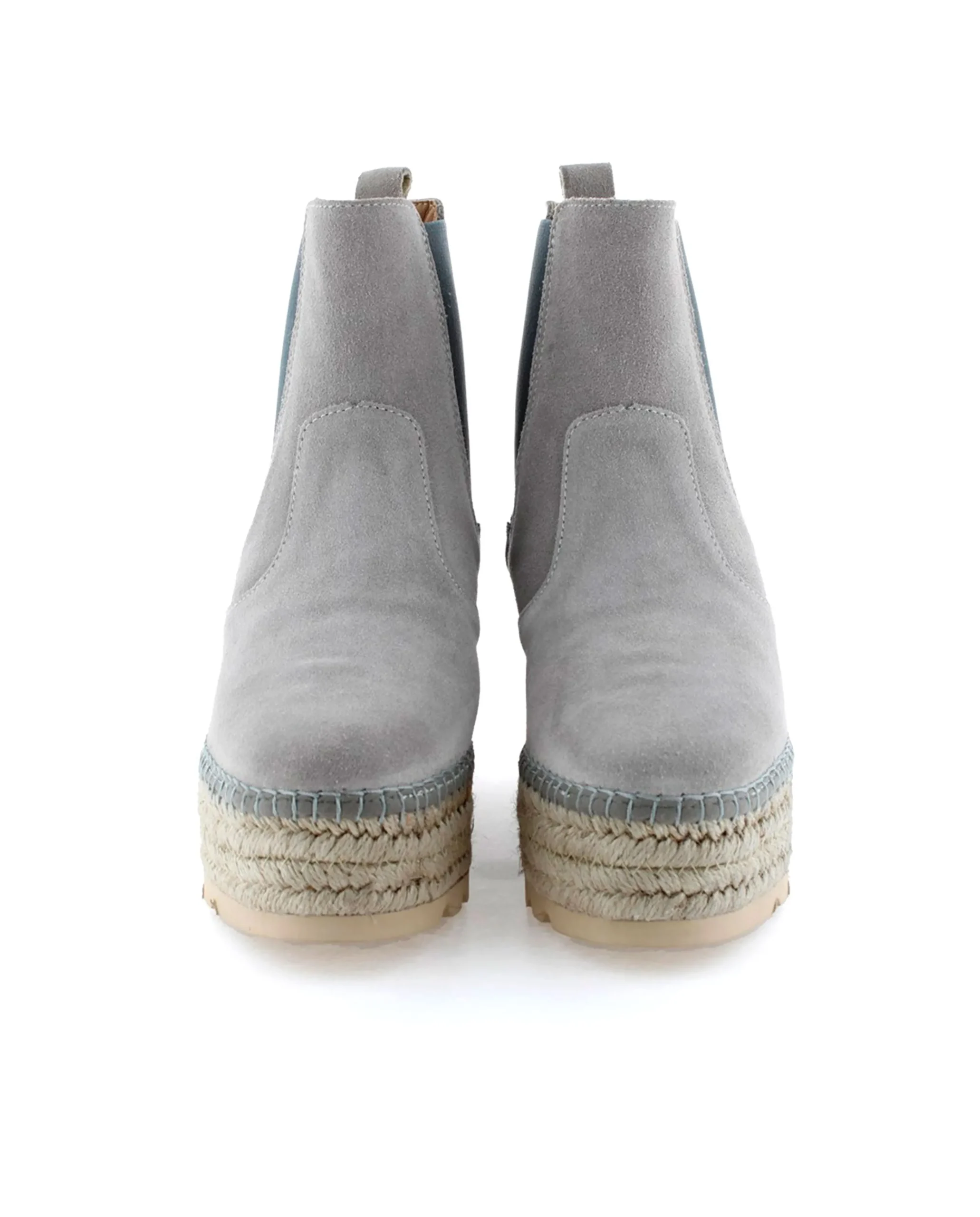 Botín Chelsea de cuña de yute natural de 6 cm en serraje color gris. Plantilla de microfibra transpirable y antibacteriana.