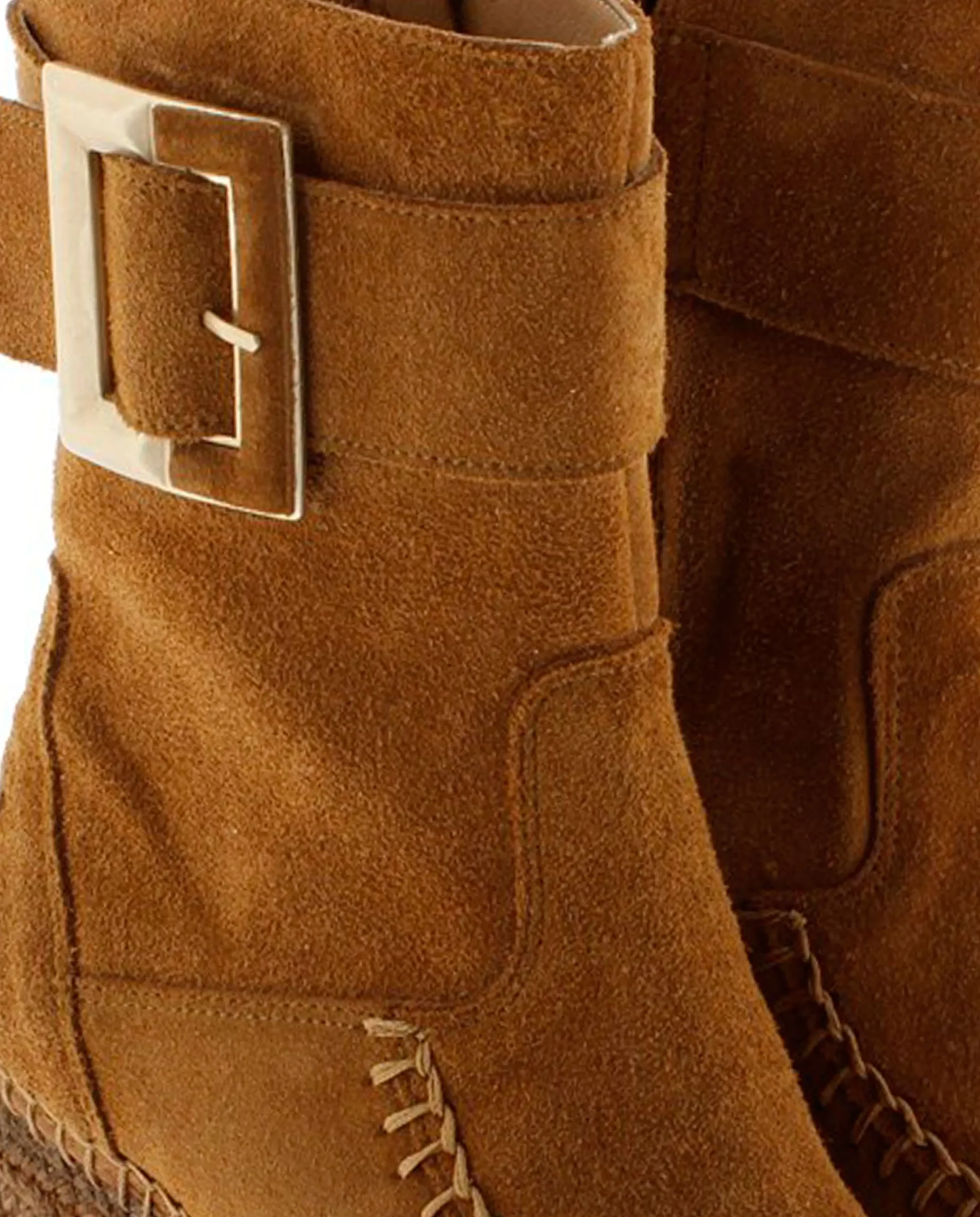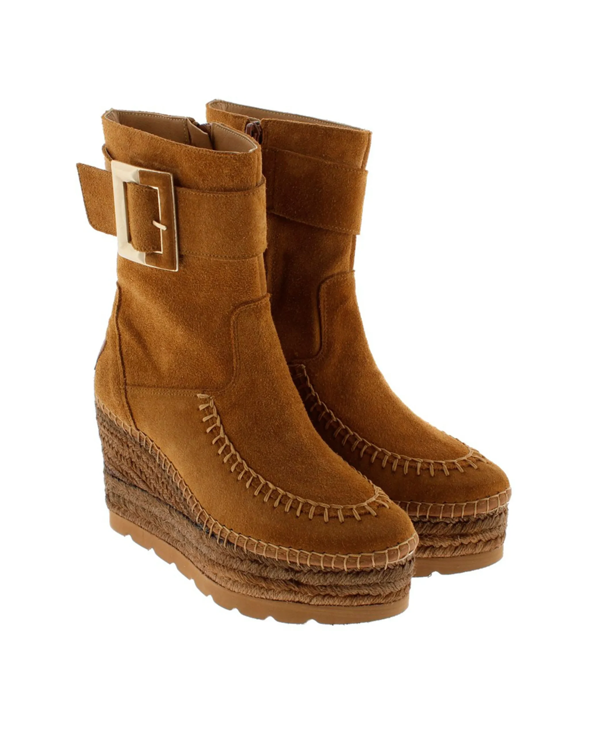 Botín de cuña de yute natural de 9,5 cm en serraje color cuero. Plantilla de microfibra transpirable y antibacteriana.