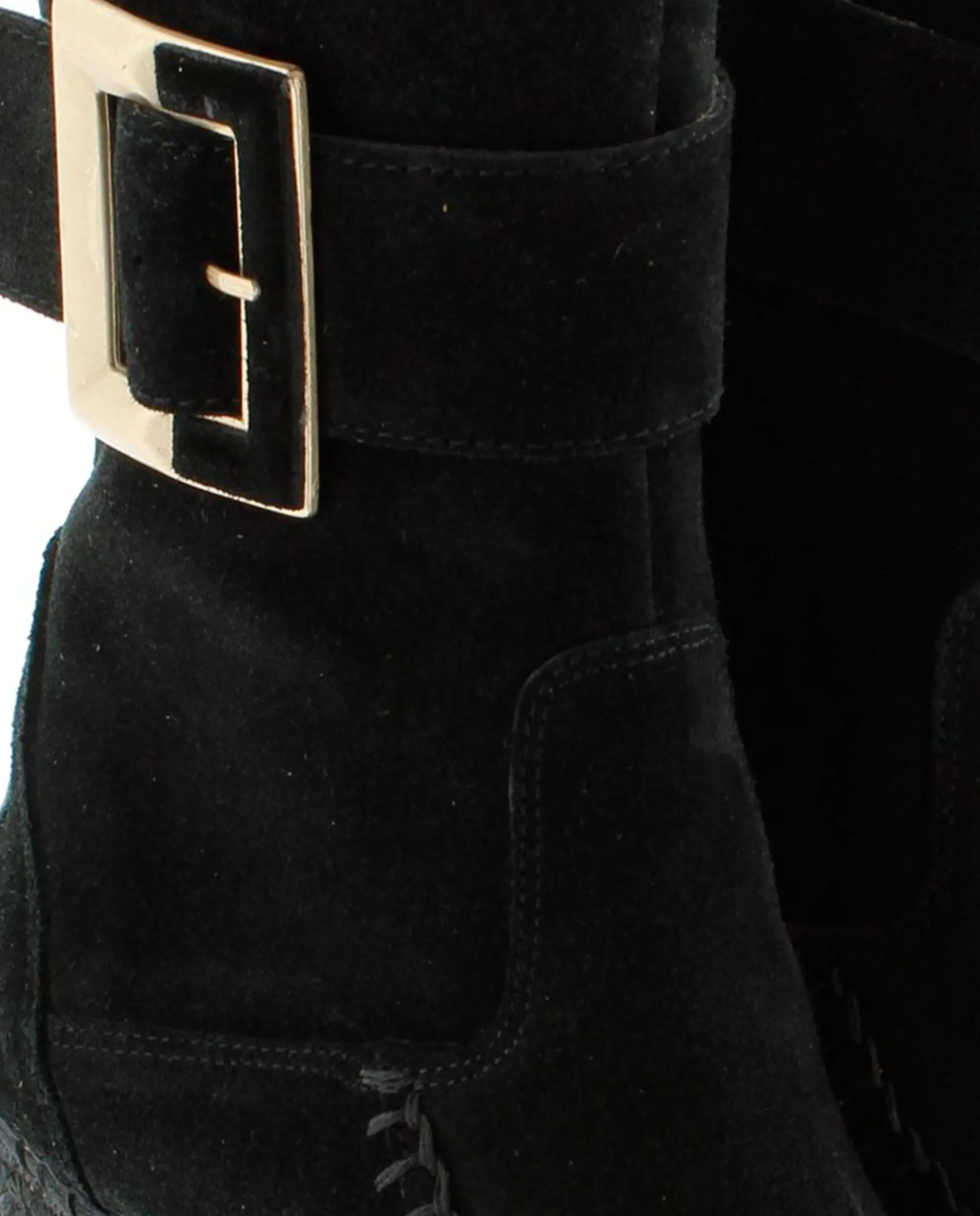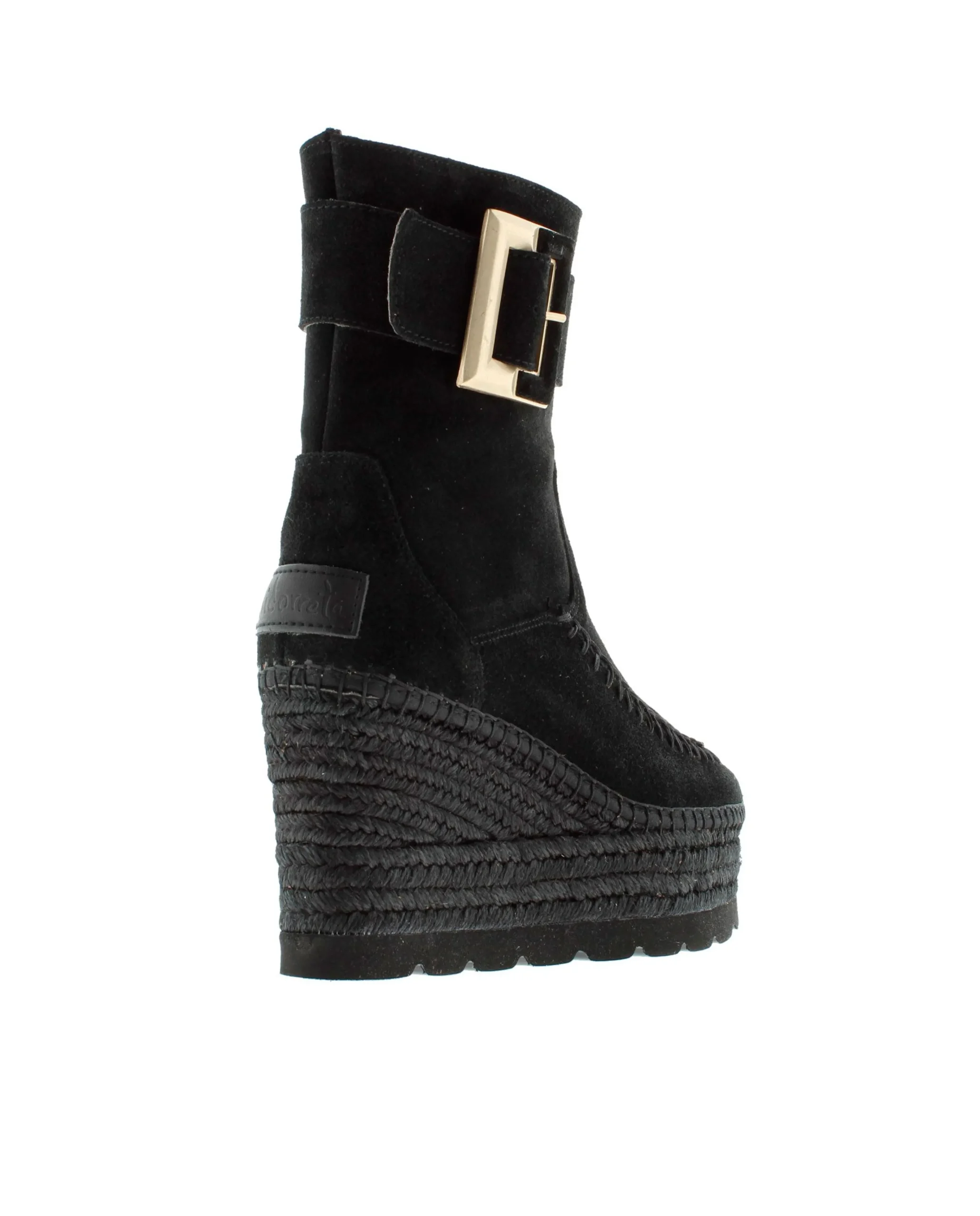 Botín de cuña de yute natural de 9,5 cm en serraje color negro. Plantilla de microfibra transpirable y antibacteriana.