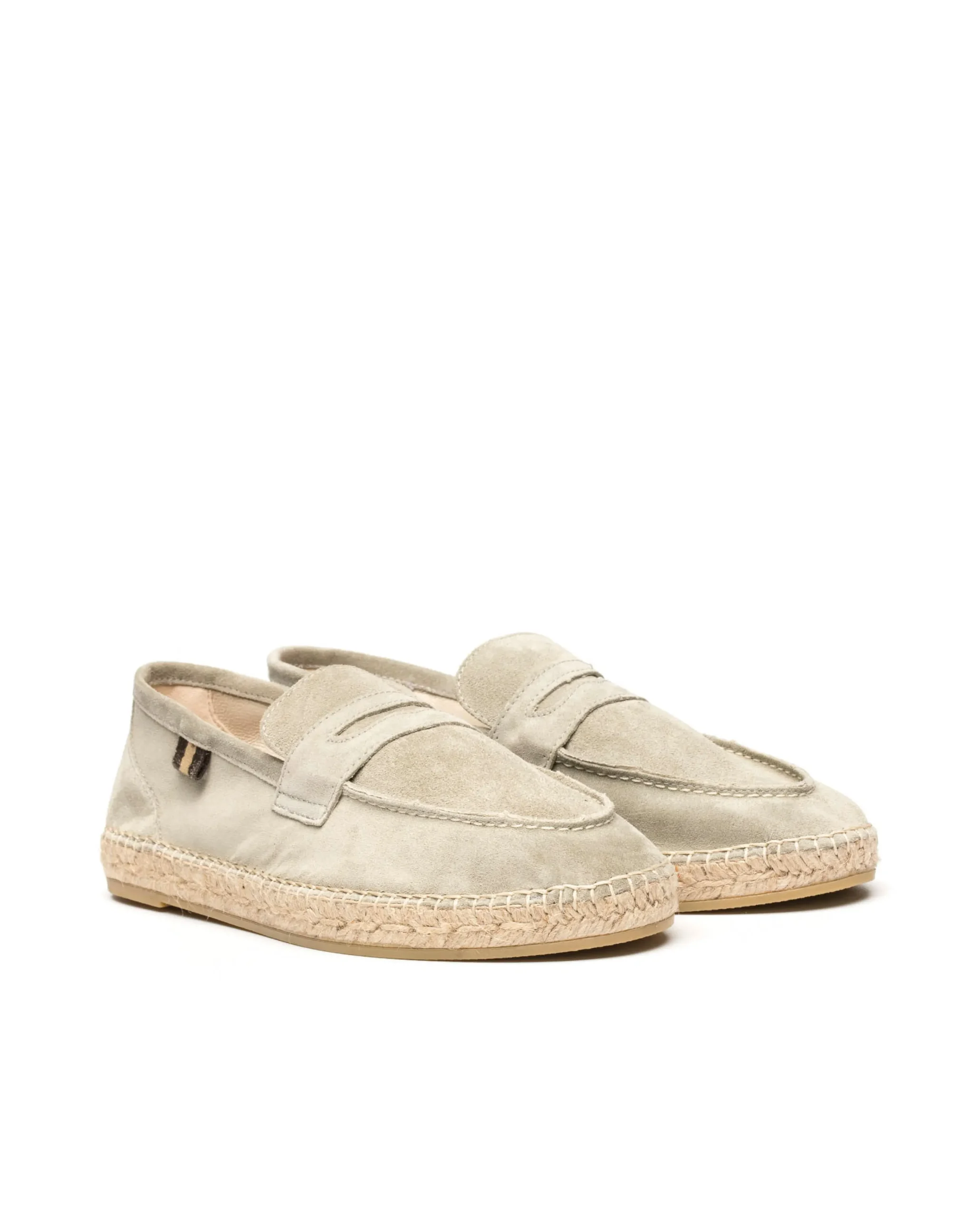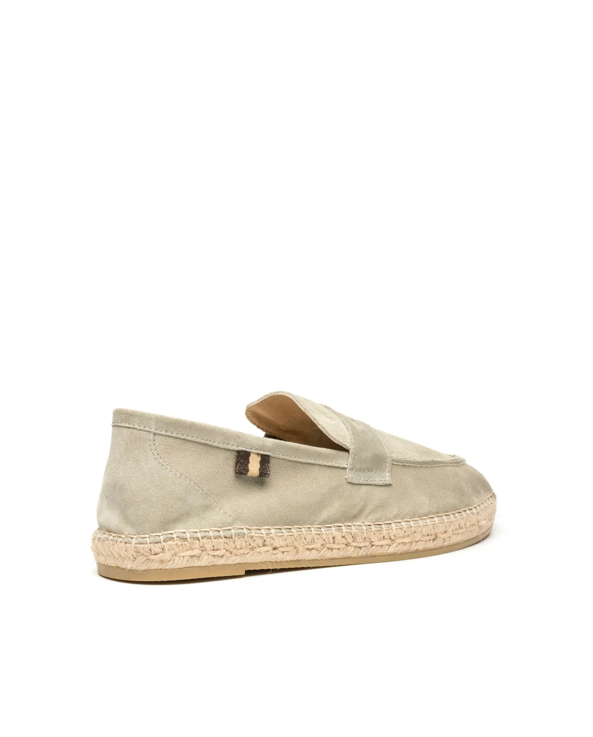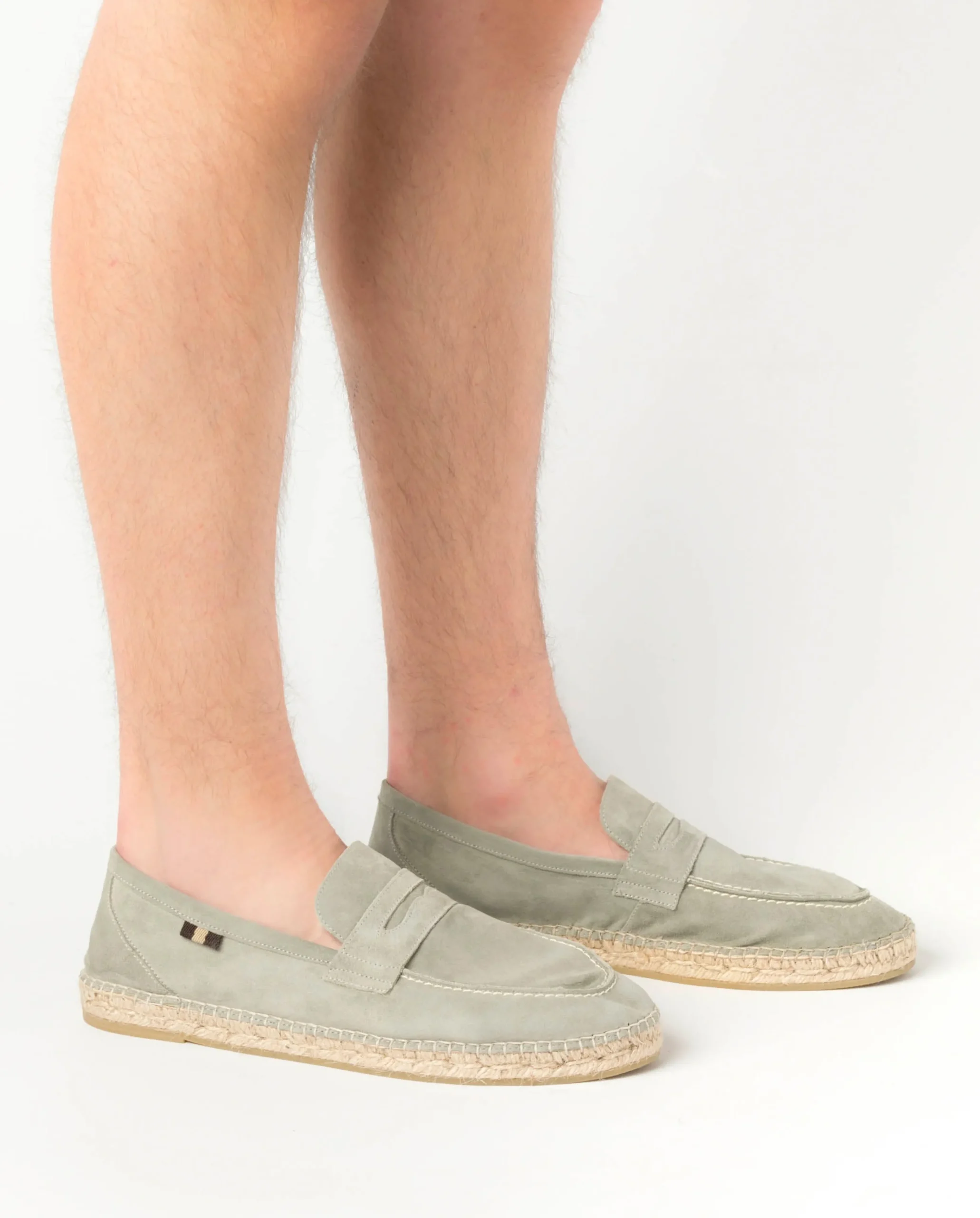 Mocasín con piso de yute natural de 2 cm en serraje en color agua. Plantilla de microfibra transpirable y antibacteriana.