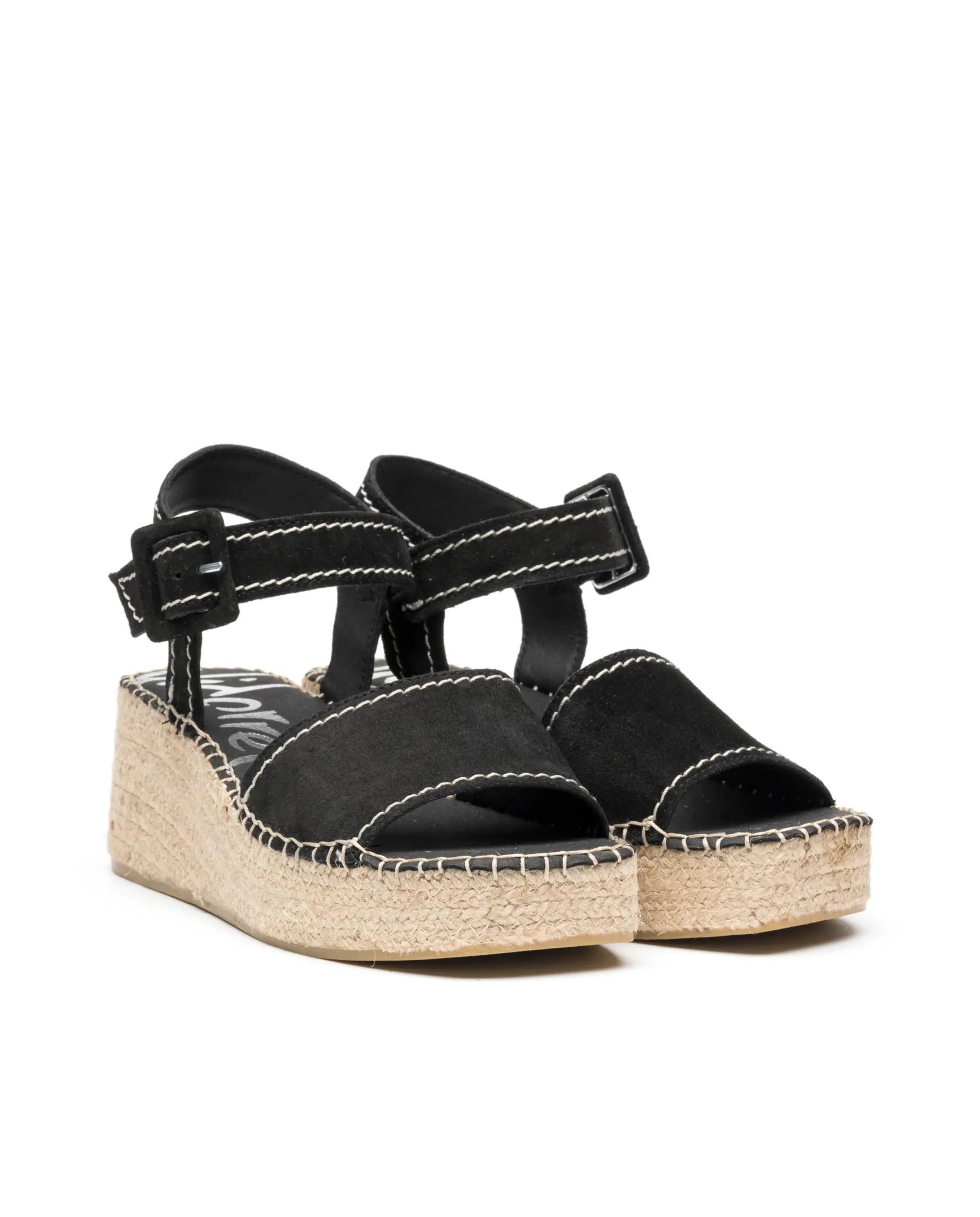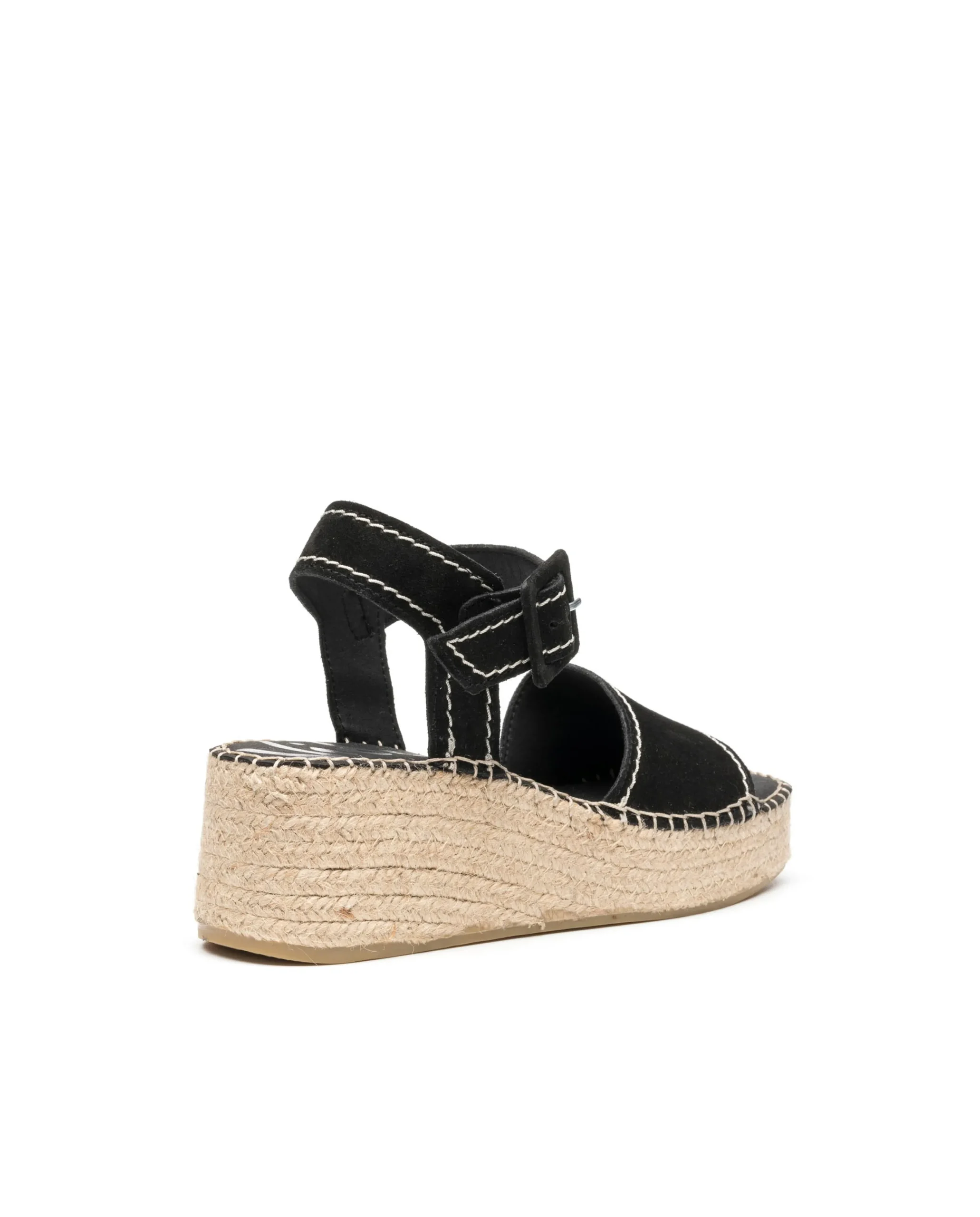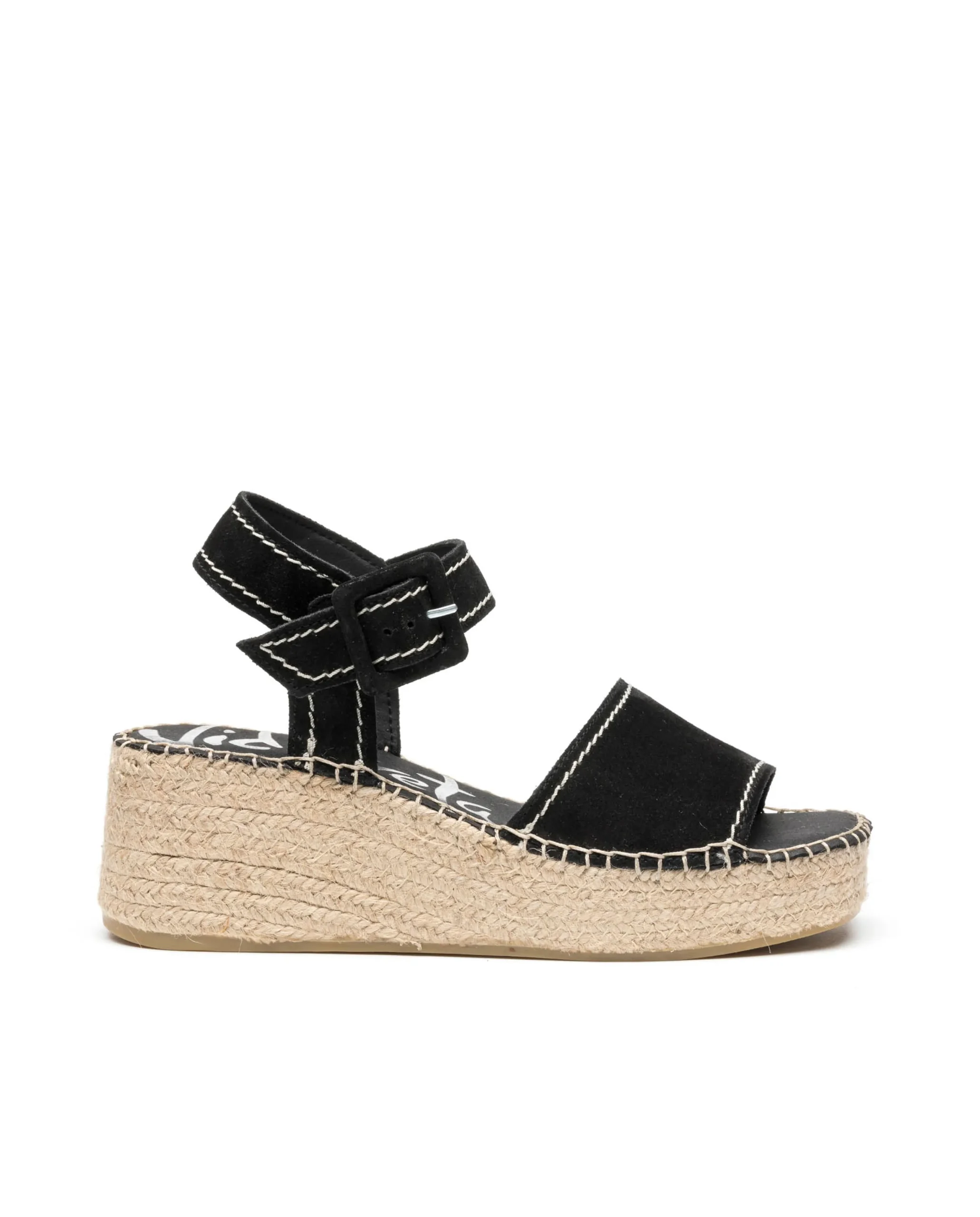 Alpargata de cuña de yute natural de 6 cm en serraje color negro. Plantilla de microfibra transpirable y antibacteriana.