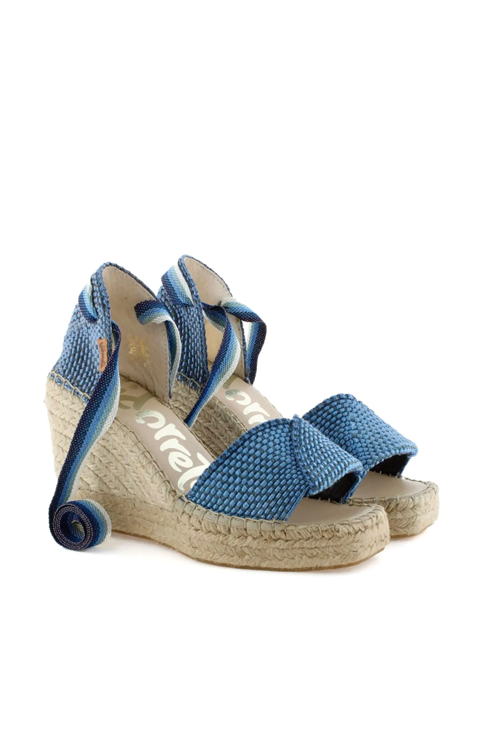 Alpargata de cuña de yute natural de 9,5 cm en color jeans. Plantilla de microfibra transpirable y antibacteriana.