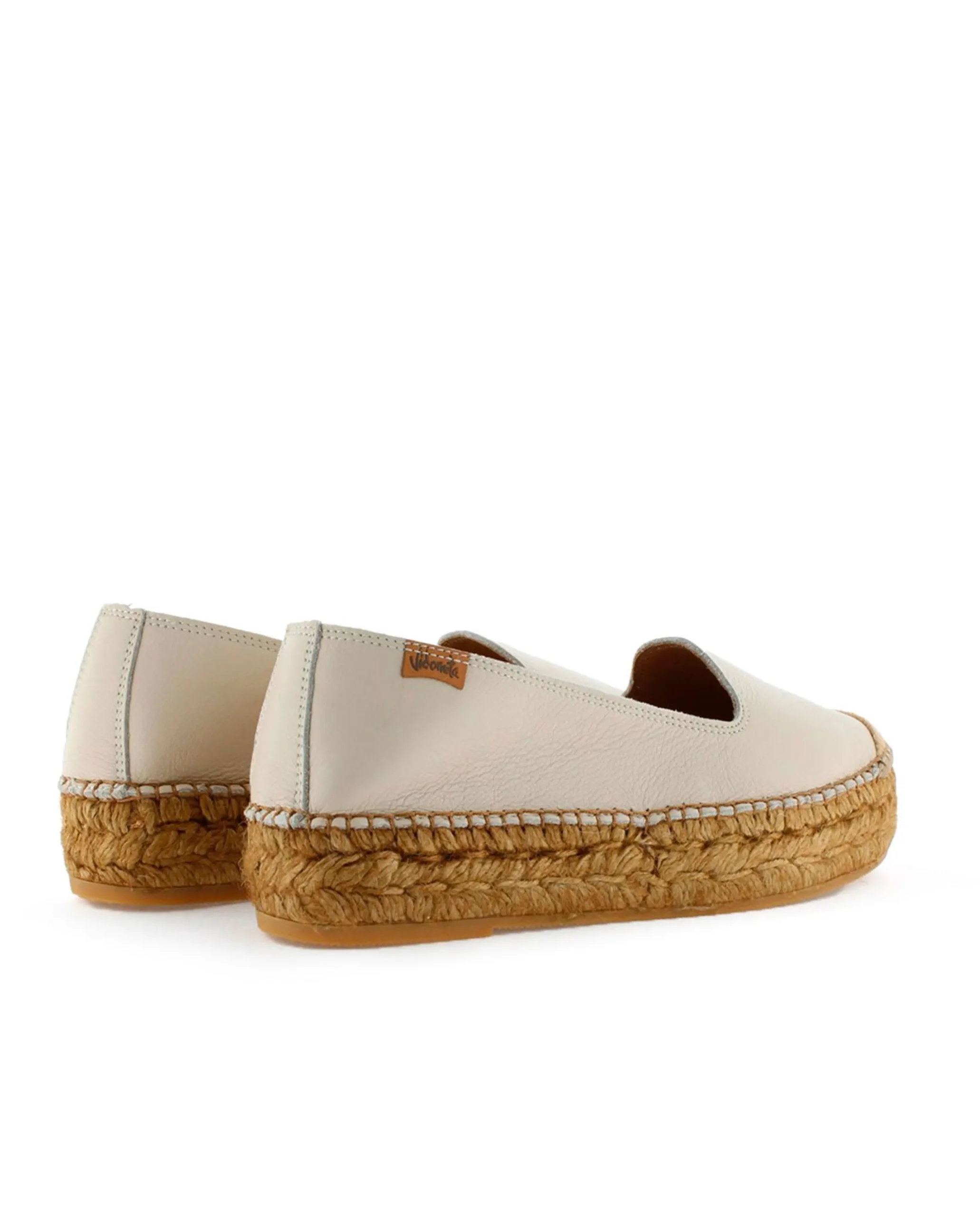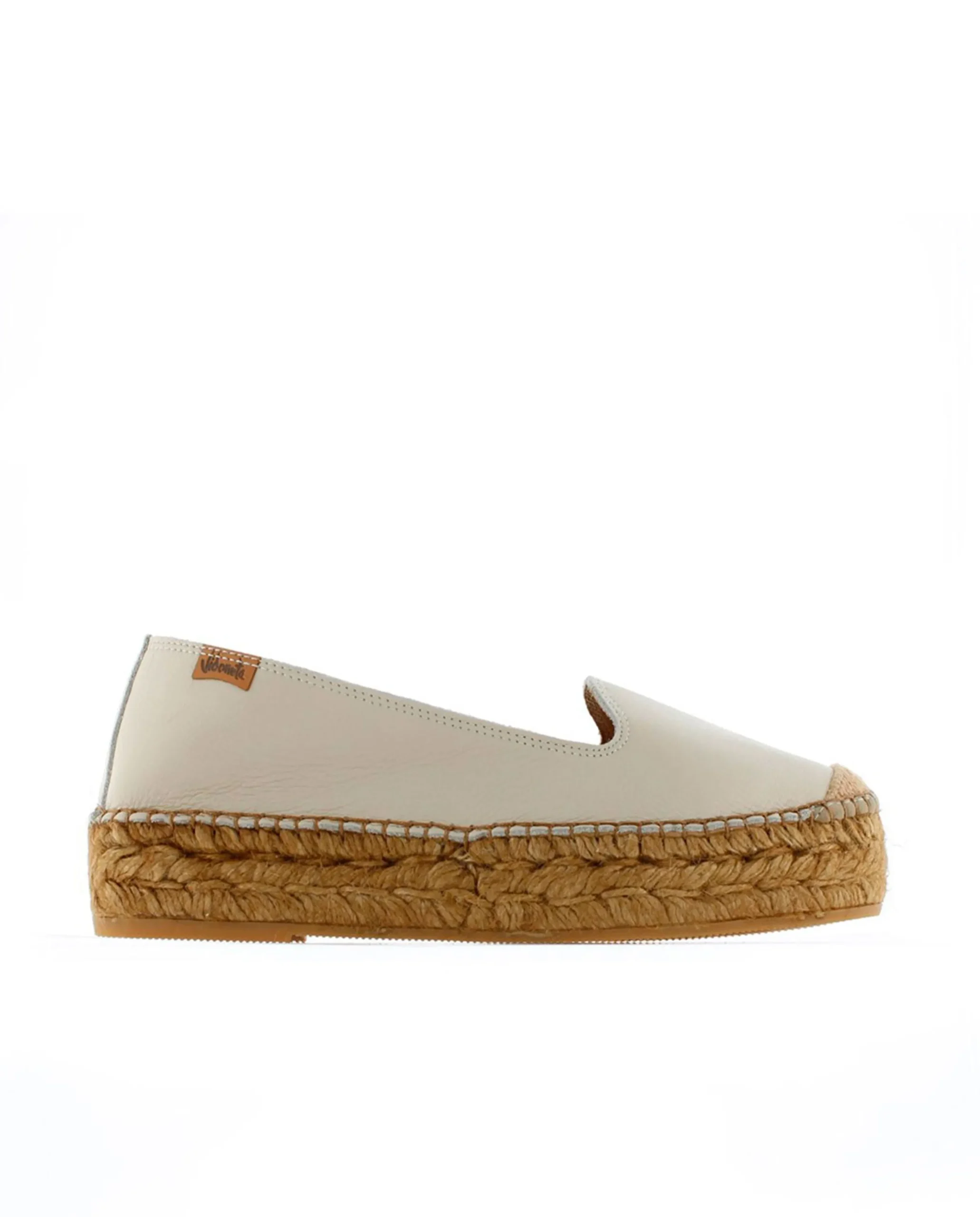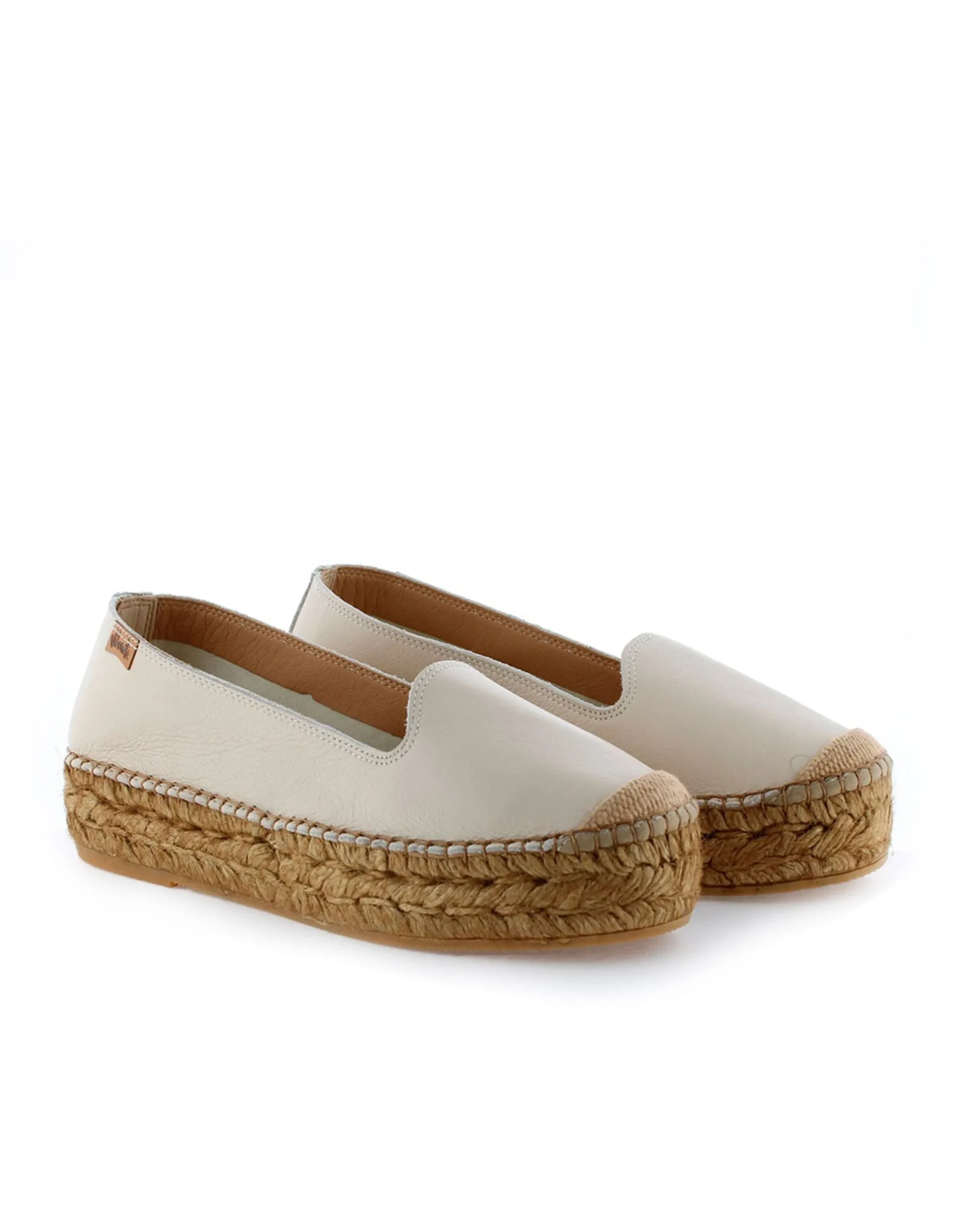 Slipper de plataforma de yute natural de 3 cm en napa color arena. Plantilla de microfibra transpirable y antibacteriana.