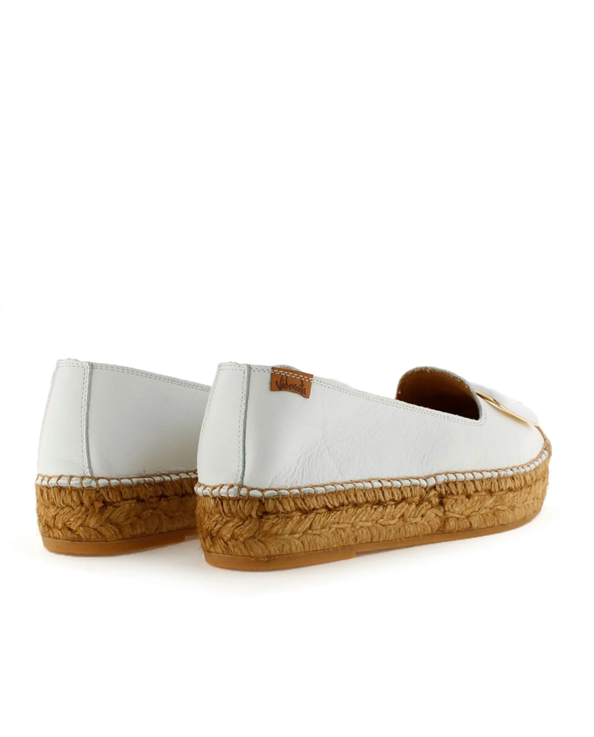 Slipper de plataforma de yute natural de 3 cm en napa color blanco. Plantilla de microfibra transpirable y antibacteriana.