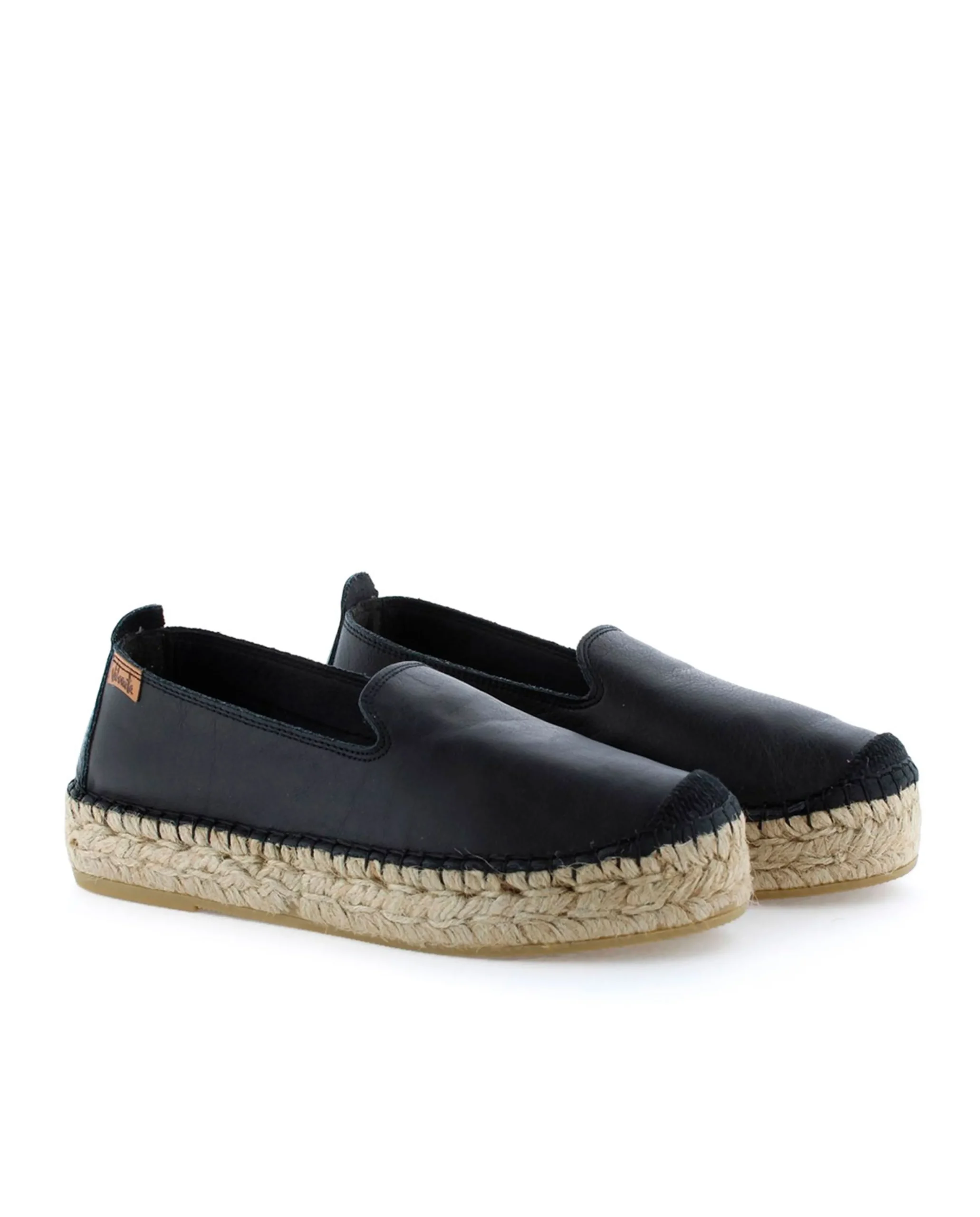 Slipper de plataforma de yute natural de 3 cm en napa color negro. Plantilla de microfibra transpirable y antibacteriana.
