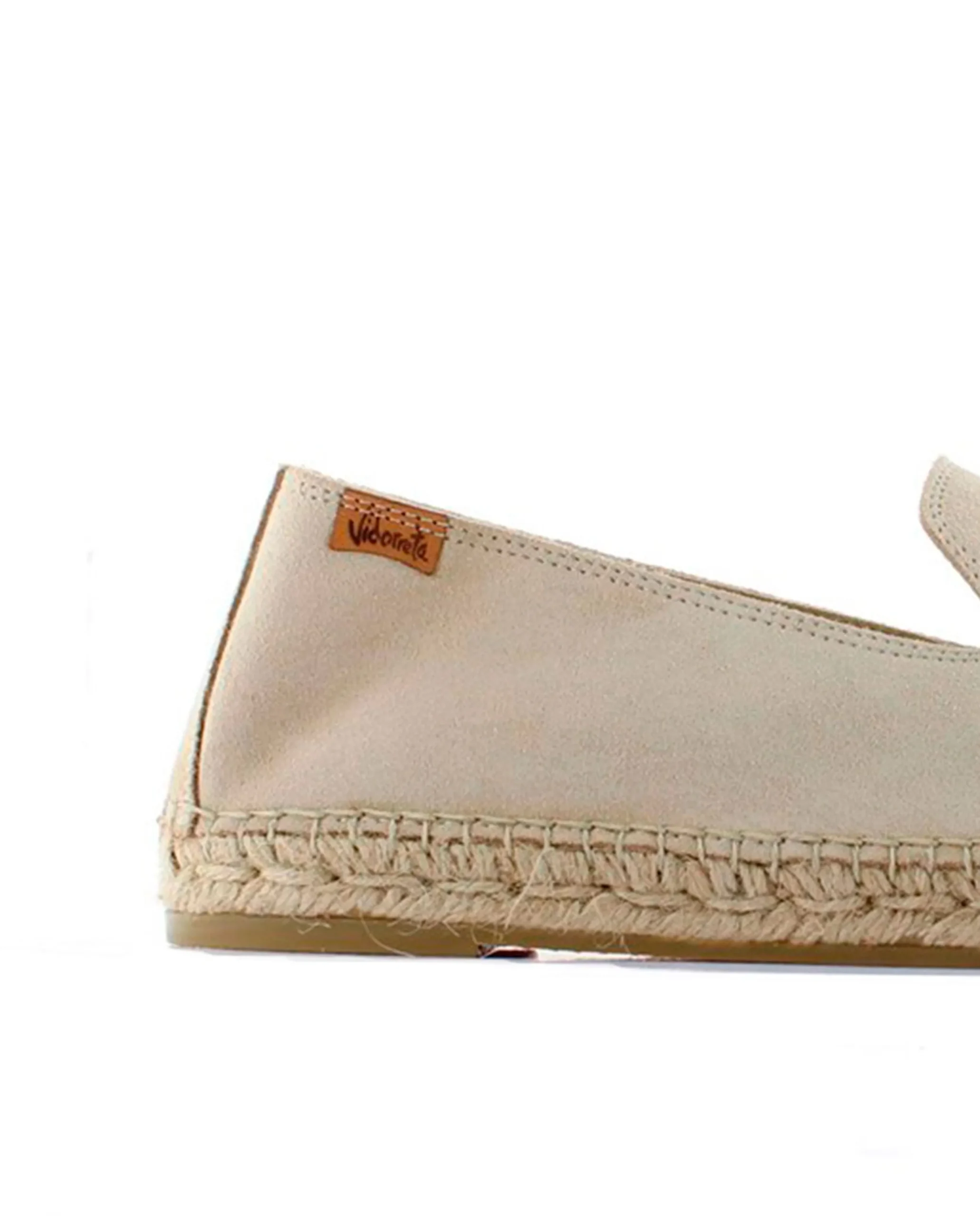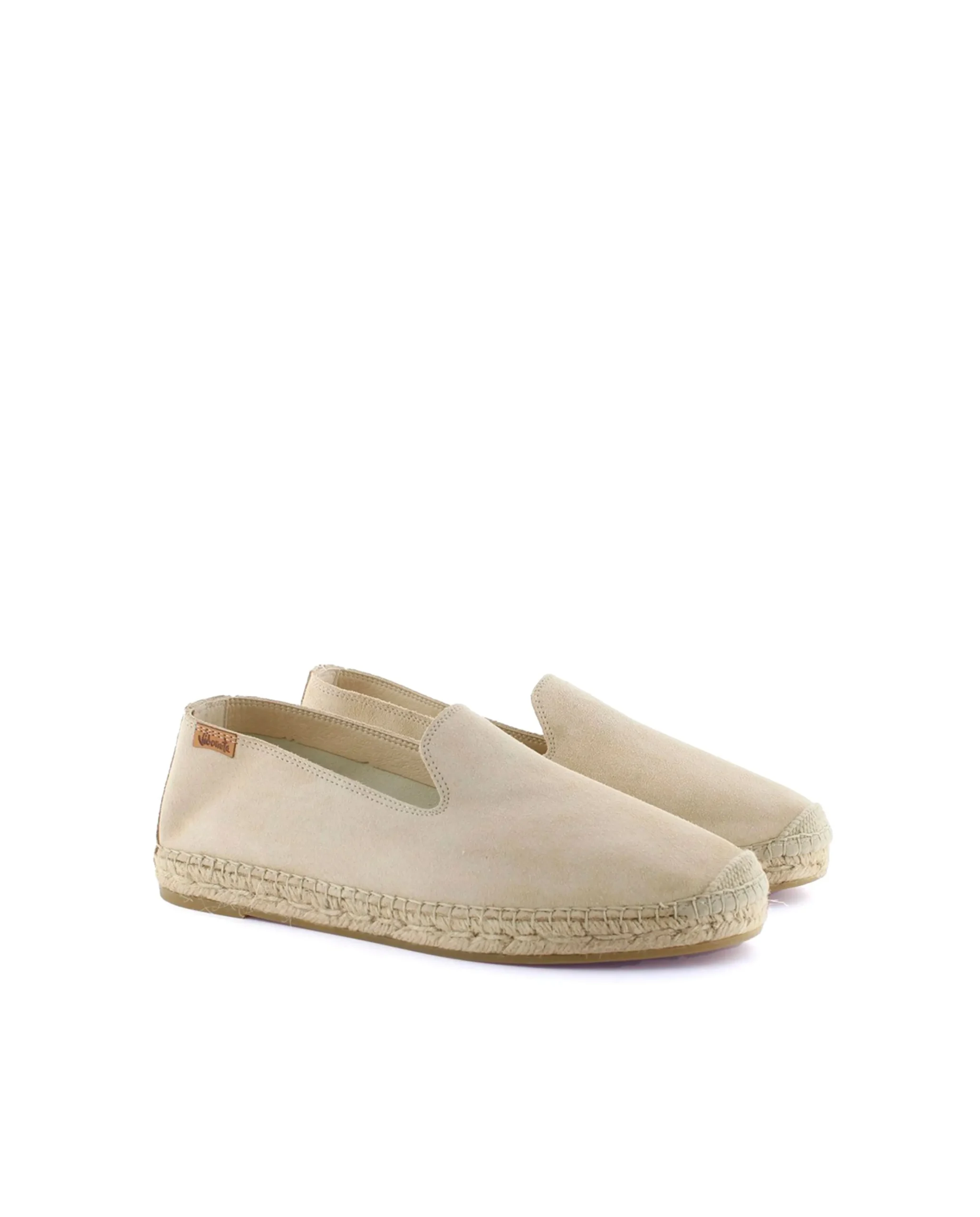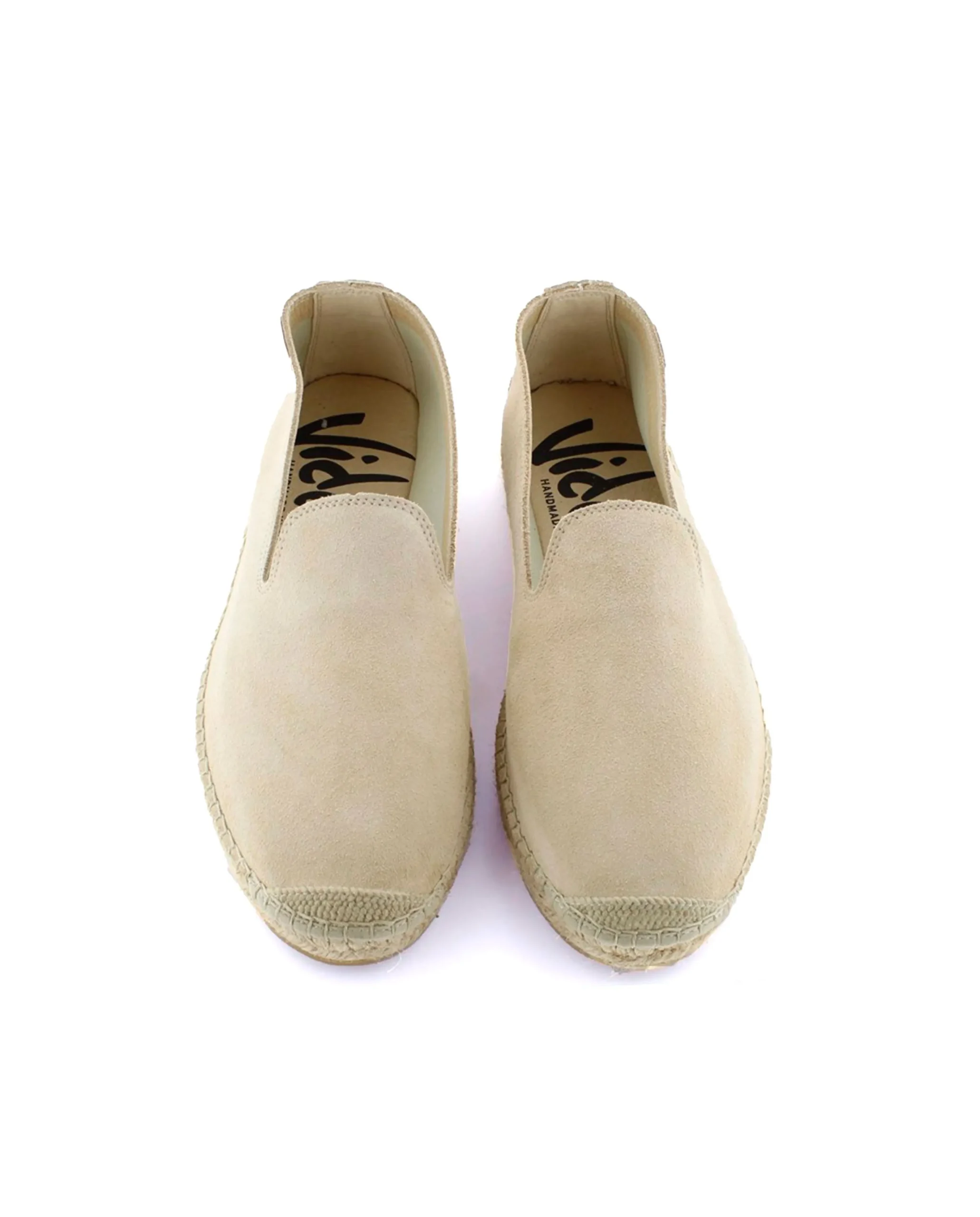 Slipper con piso de yute natural de 2 cm en serraje color arena. Plantilla de microfibra transpirable y antibacteriana.