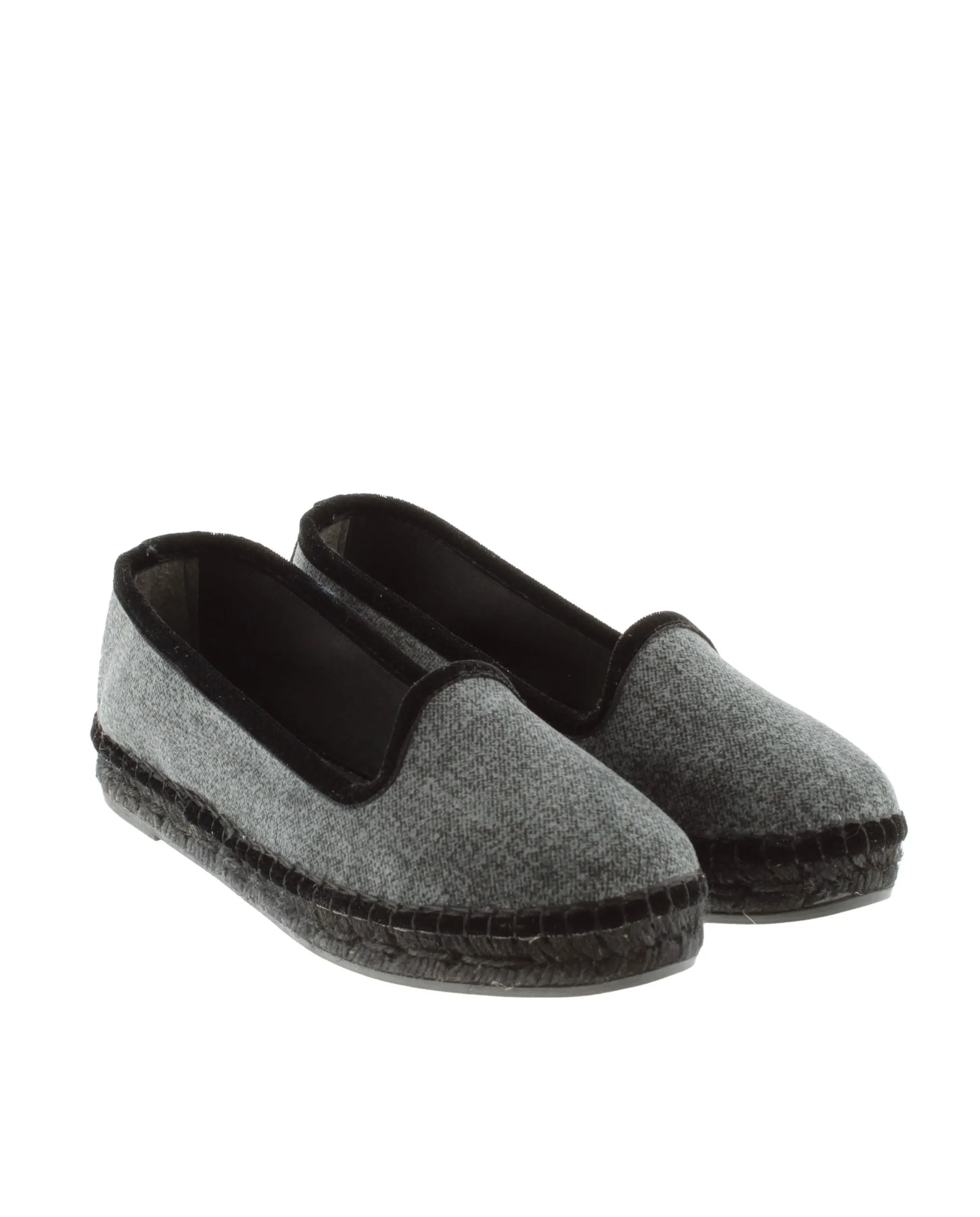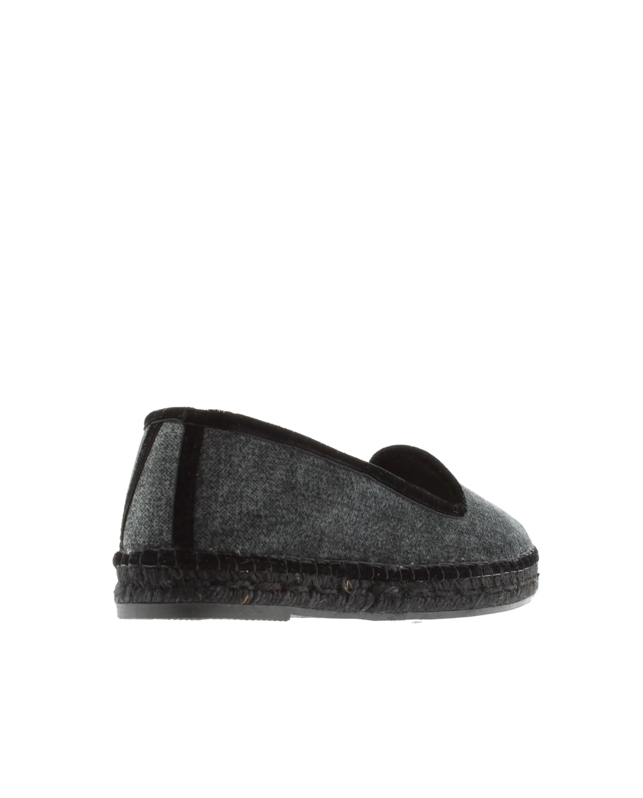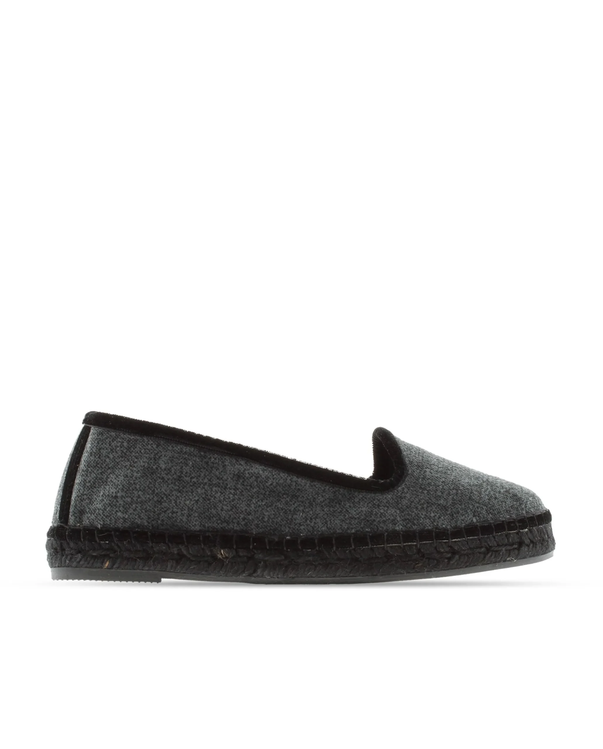 Slipper con suela de yute natural de 2 cm en terciopelo color negro. Plantilla de microfibra transpirable y antibacteriana.
