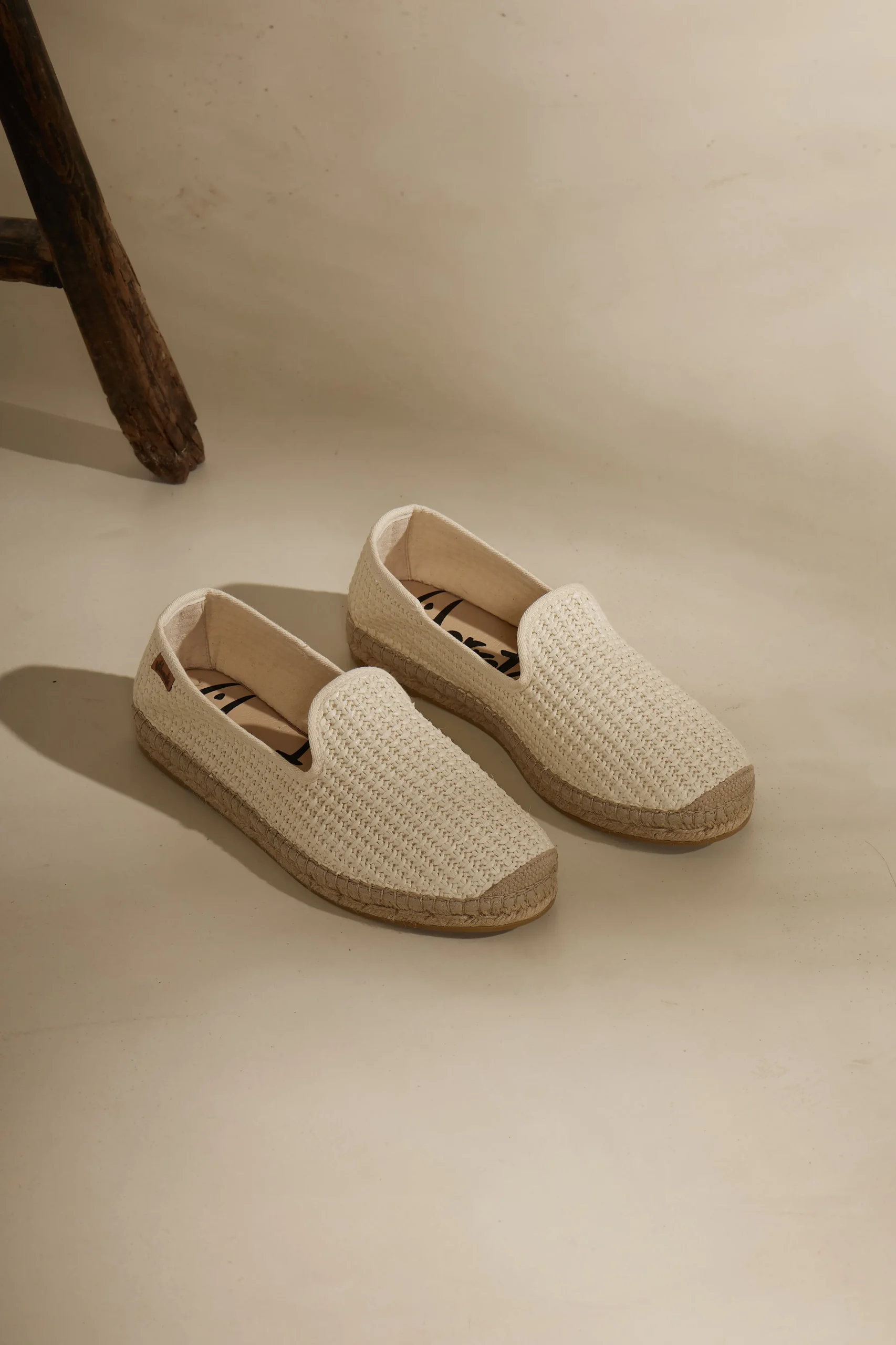 Slipper con piso de yute natural de 2 cm en rafia nudos color crudo. Plantilla de microfibra transpirable y antibacteriana.