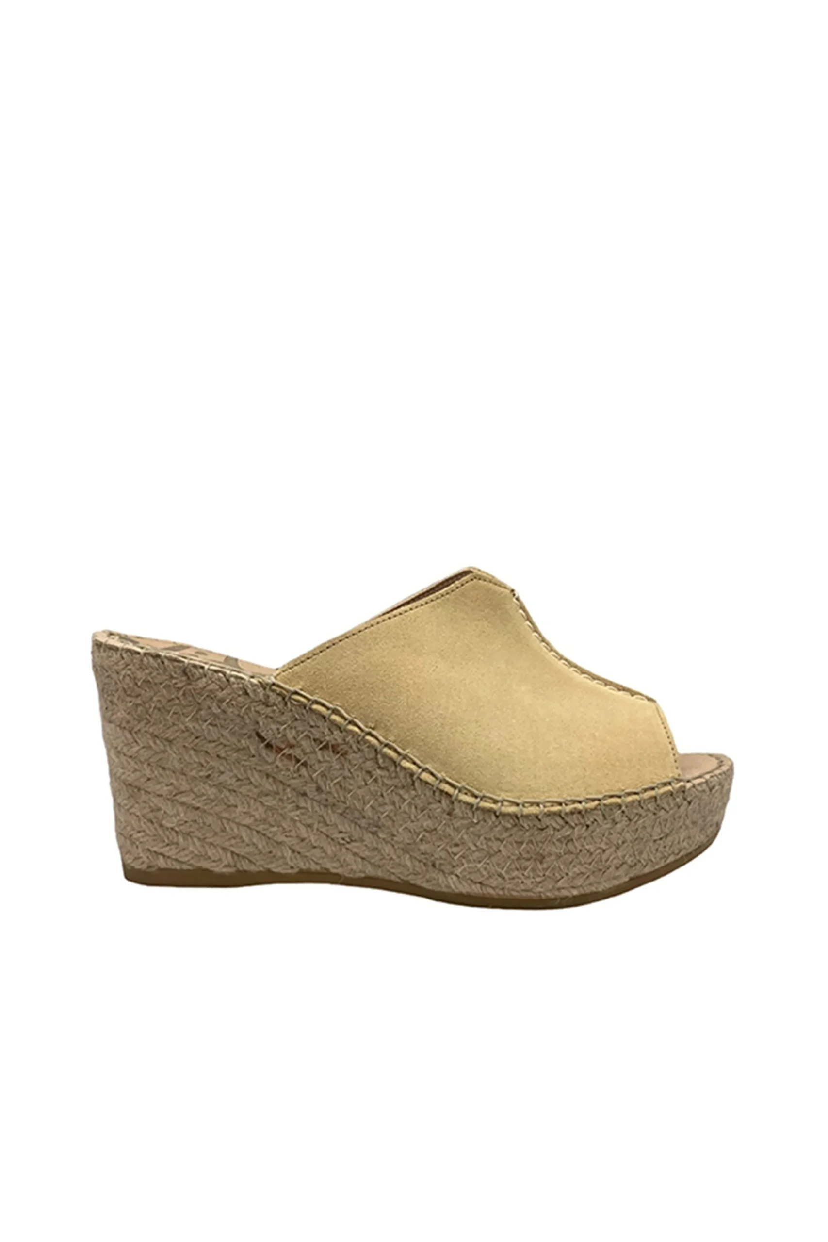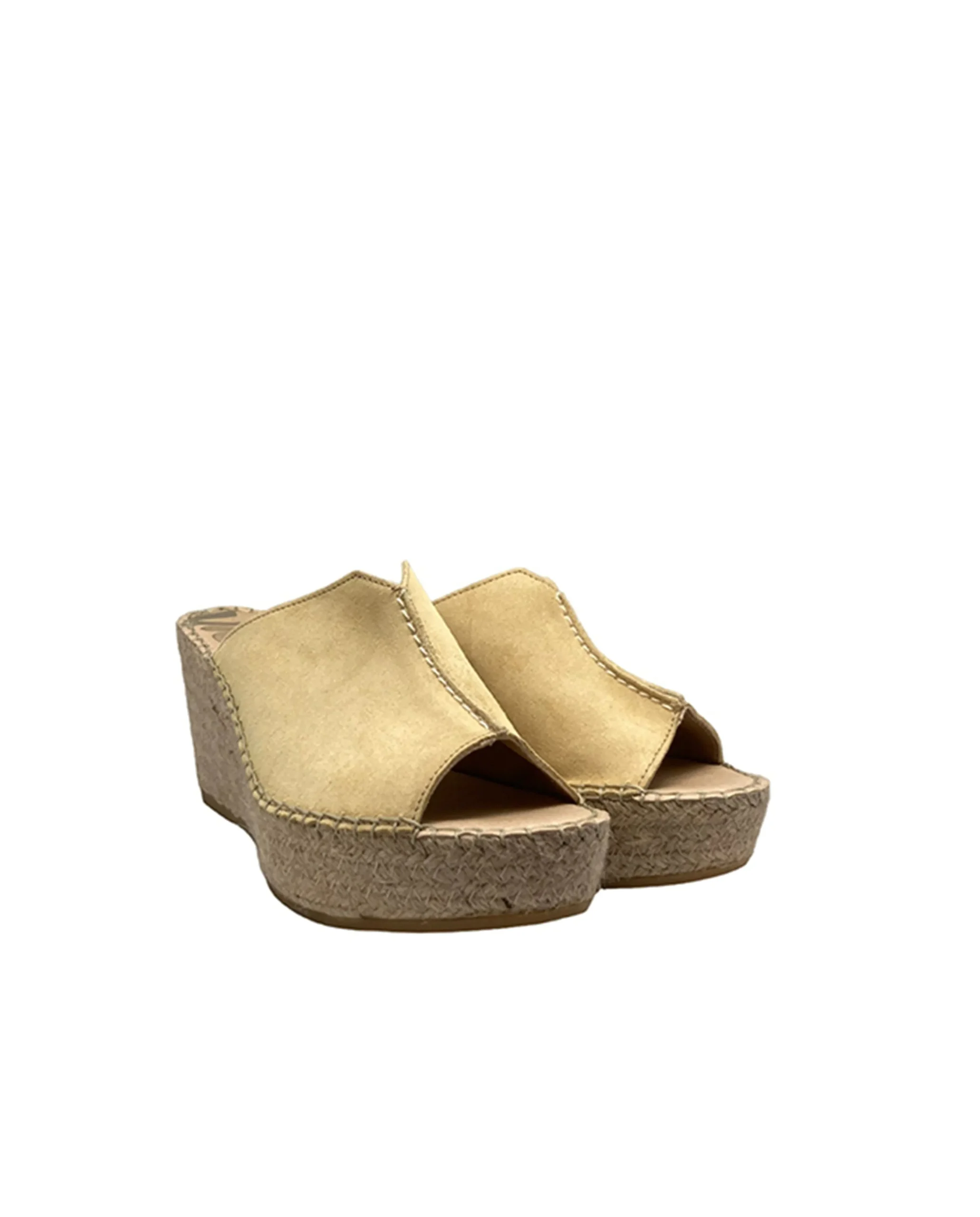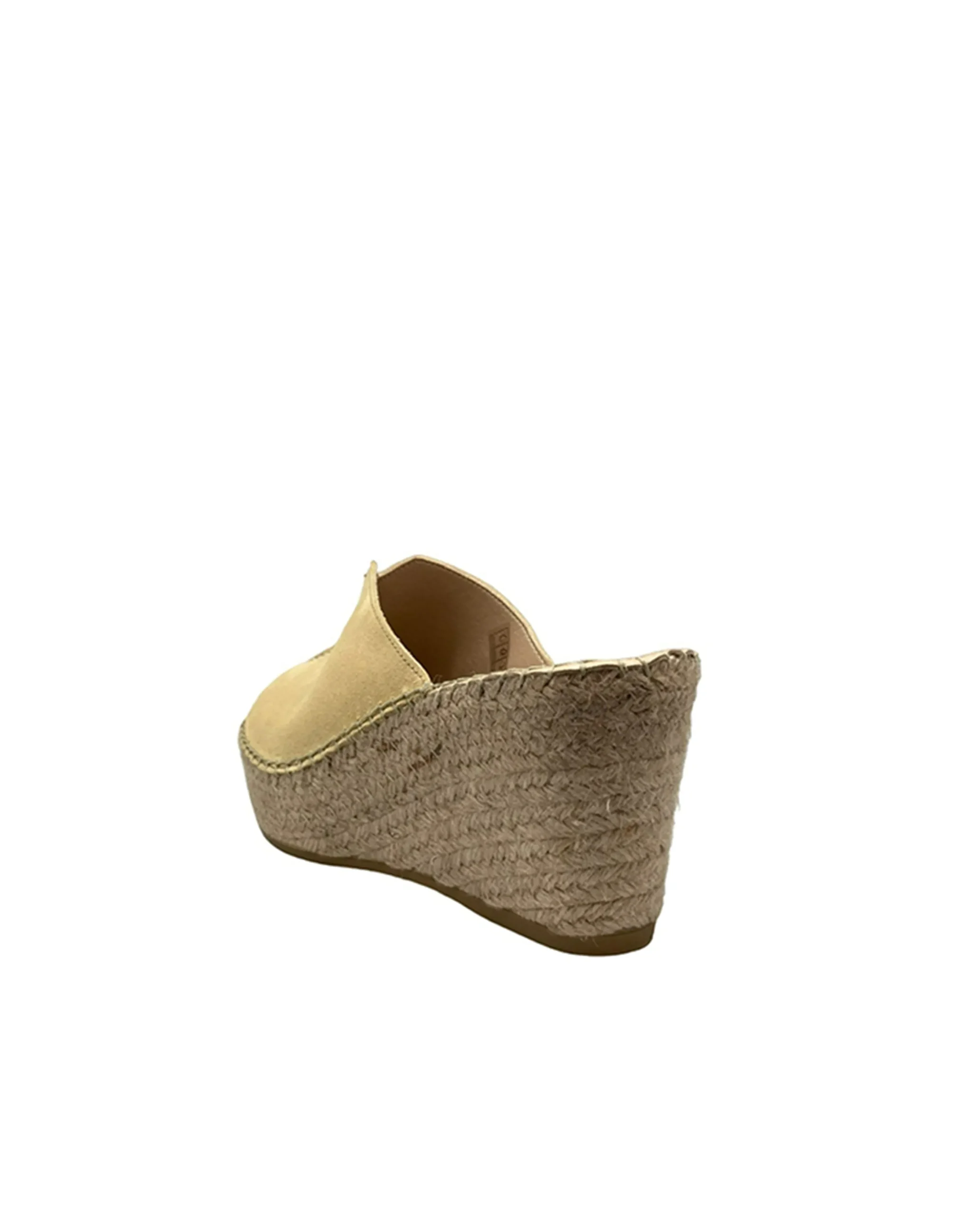 Alpargata de cuña de yute natural de 8 cm en serraje color limón. Plantilla de microfibra transpirable y antibacteriana.